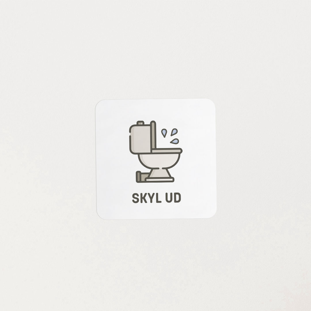 Wallstickeren Skyl ud støtter en vigtig, men ofte glemt rutine i hverdagen. Med et tydeligt visuelt motiv bliver handlingen lettere at huske – uden behov for verbal påmindelse.